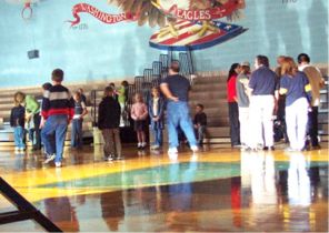 On location, taping for the film "Greener," at Washington School - October 2001.